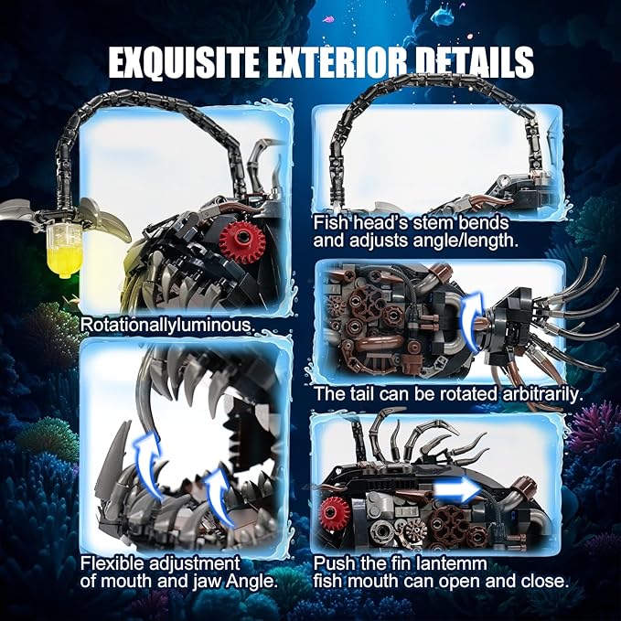 - Ocean-Themed Design: Capturing the mysterious beauty of the deep-sea anglerfish, this set combines lifelike details with industrial-inspired mechanical accents for a truly eye-catching display.